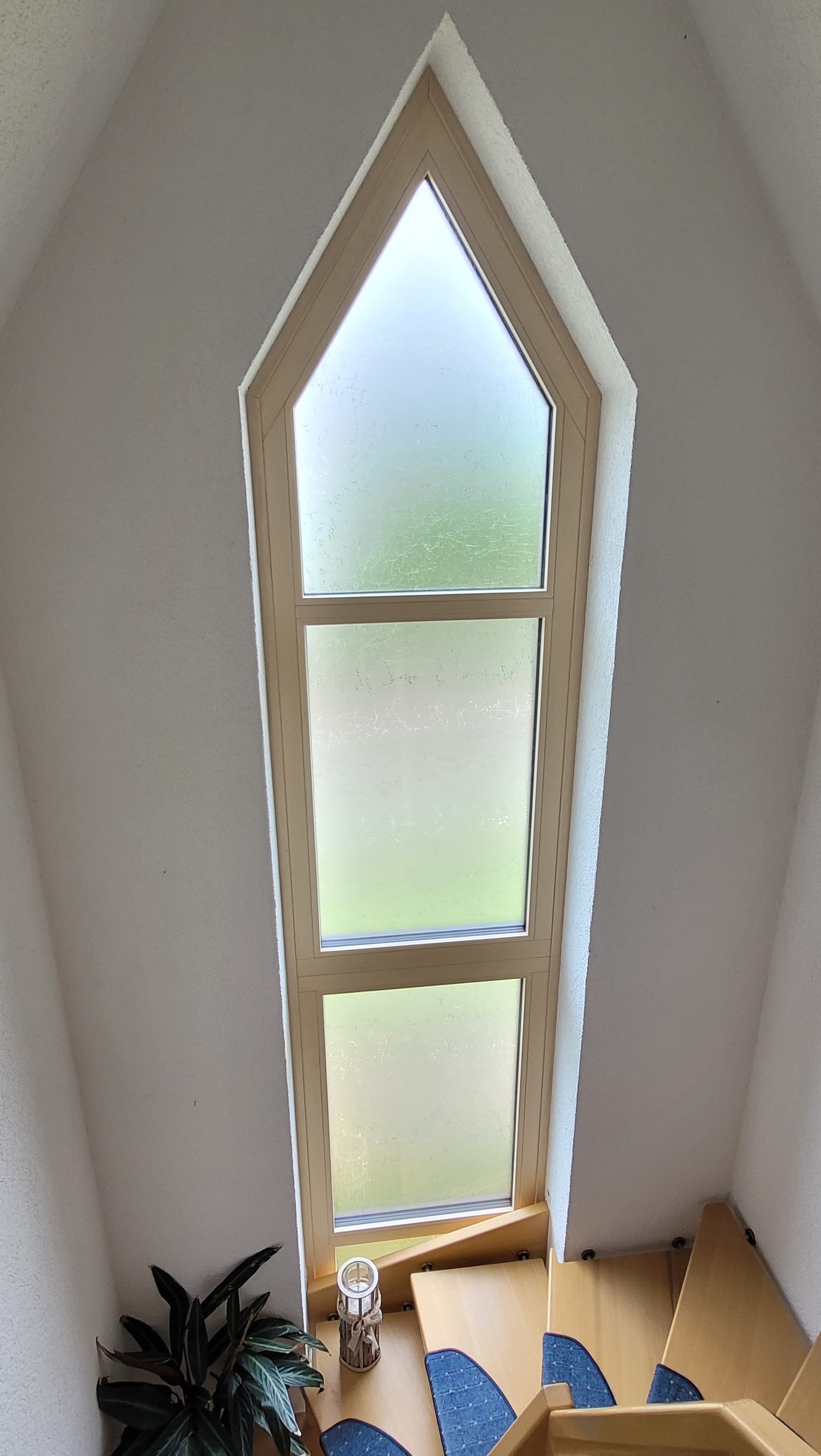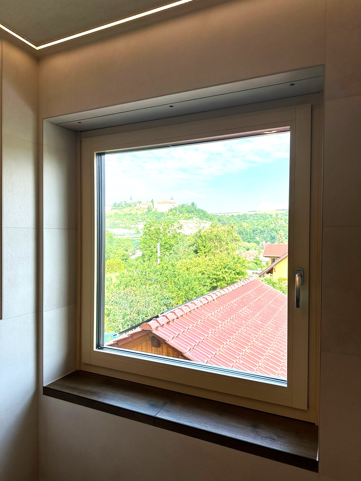 Moderne Fenstertechnik von der Firma Gaulhofer mit 3-fach-Verglasung und einem Wärmedurchlasswert von 0.5 Ug.