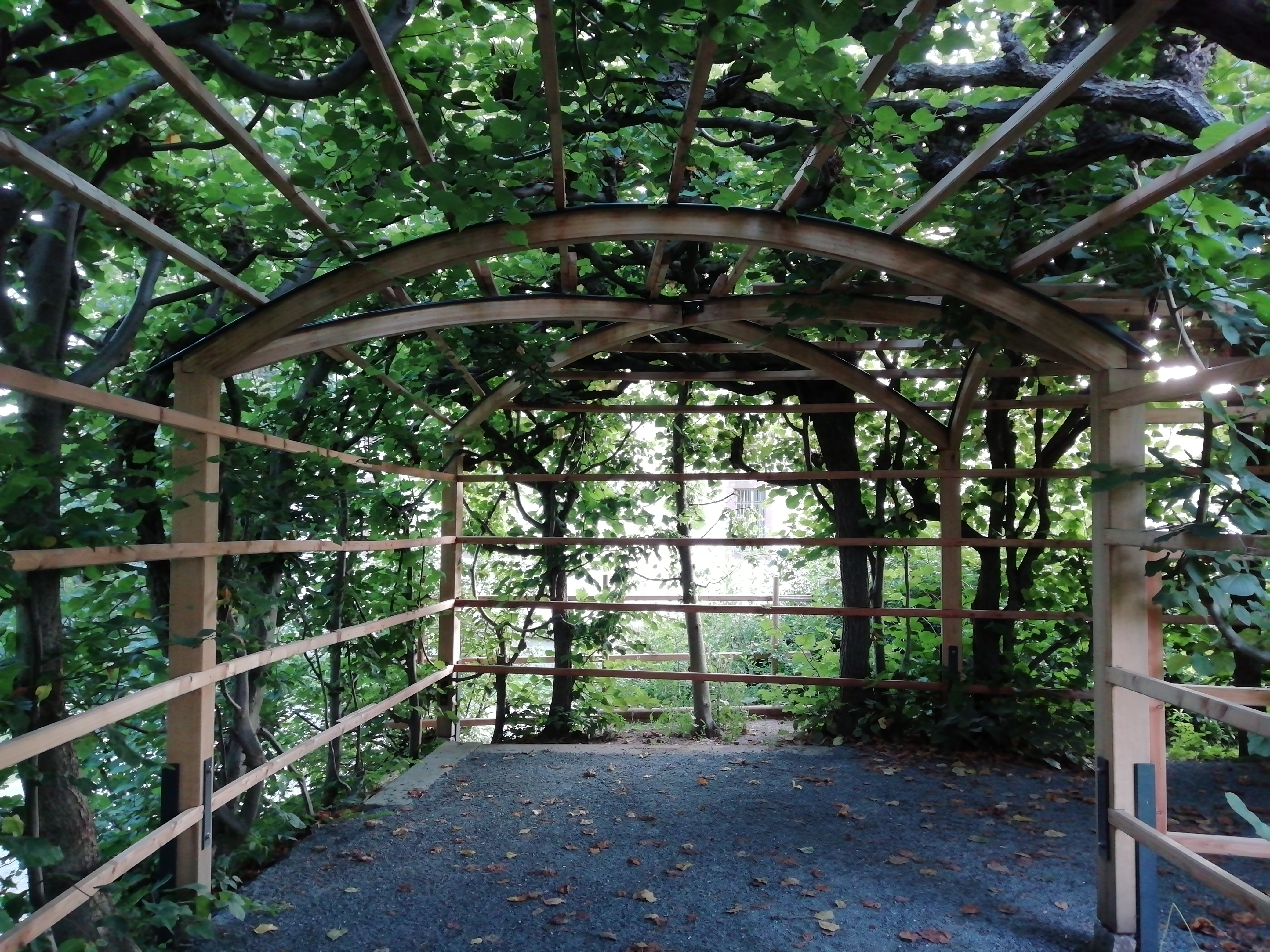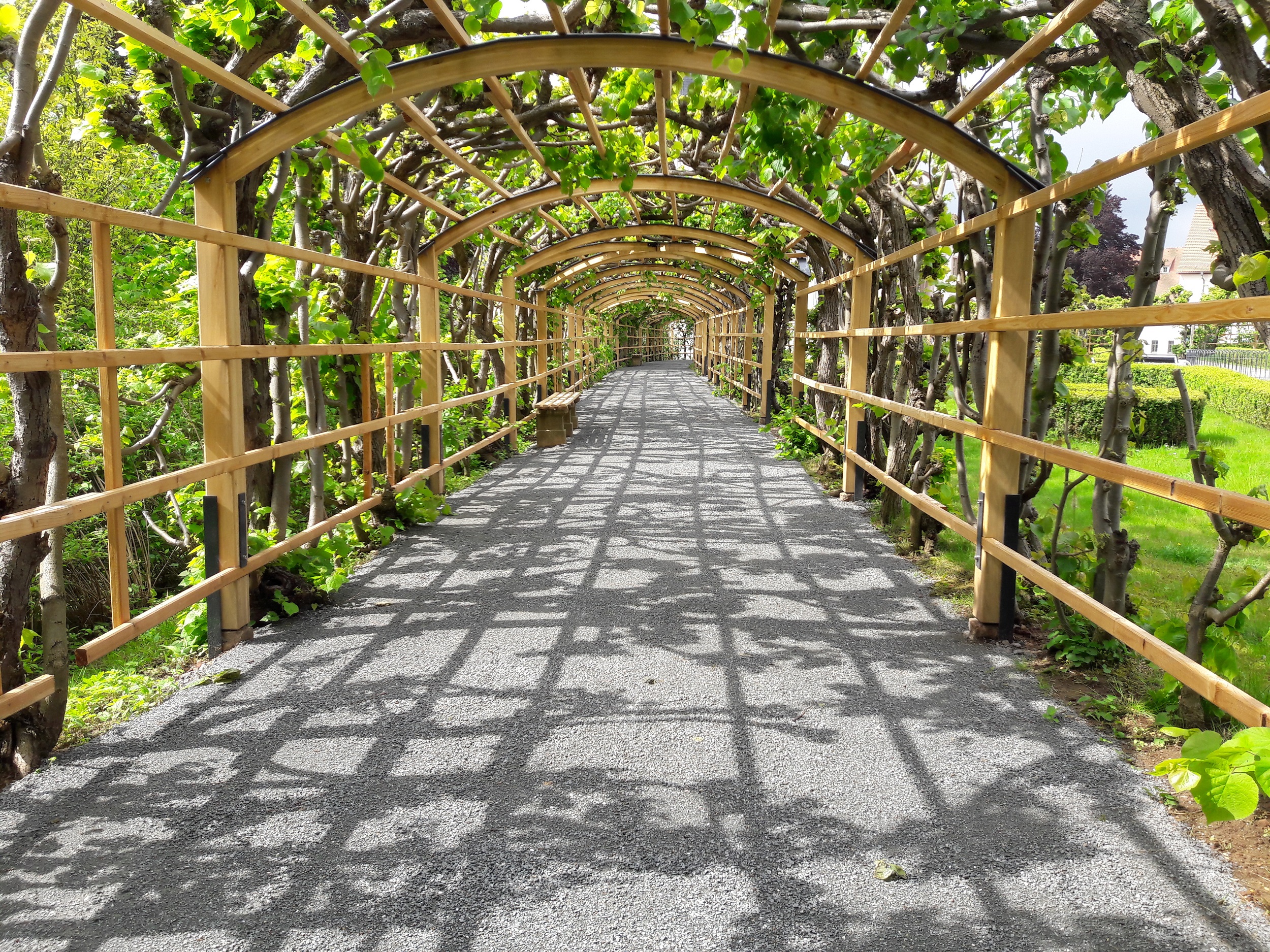 Der Bogengang im Schlossgarten Eisenberg wurde im Frühjahr 2019 fertig gestellt. Die einzelnen Bögen wurden aus Eiche gefertigt und dienen als Grundgerüst für die vorhandenen Linden.